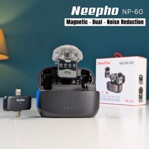 This microphone isn’t just a gadget — it’s a complete audio solution. The charging case keeps both mics powered throughout the day, and the automatic pairing makes the setup process effortless. Noise cancellation and EQ tuning help your voice sound professional even if you’re in a public area, café, bazaar, office, or outdoors.