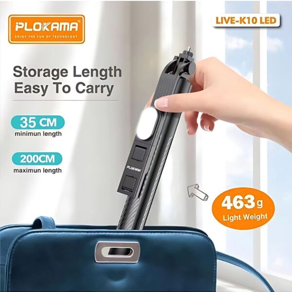 ✔ 1x Plokama LIVE-K10 LED Tripod/Selfie Stick